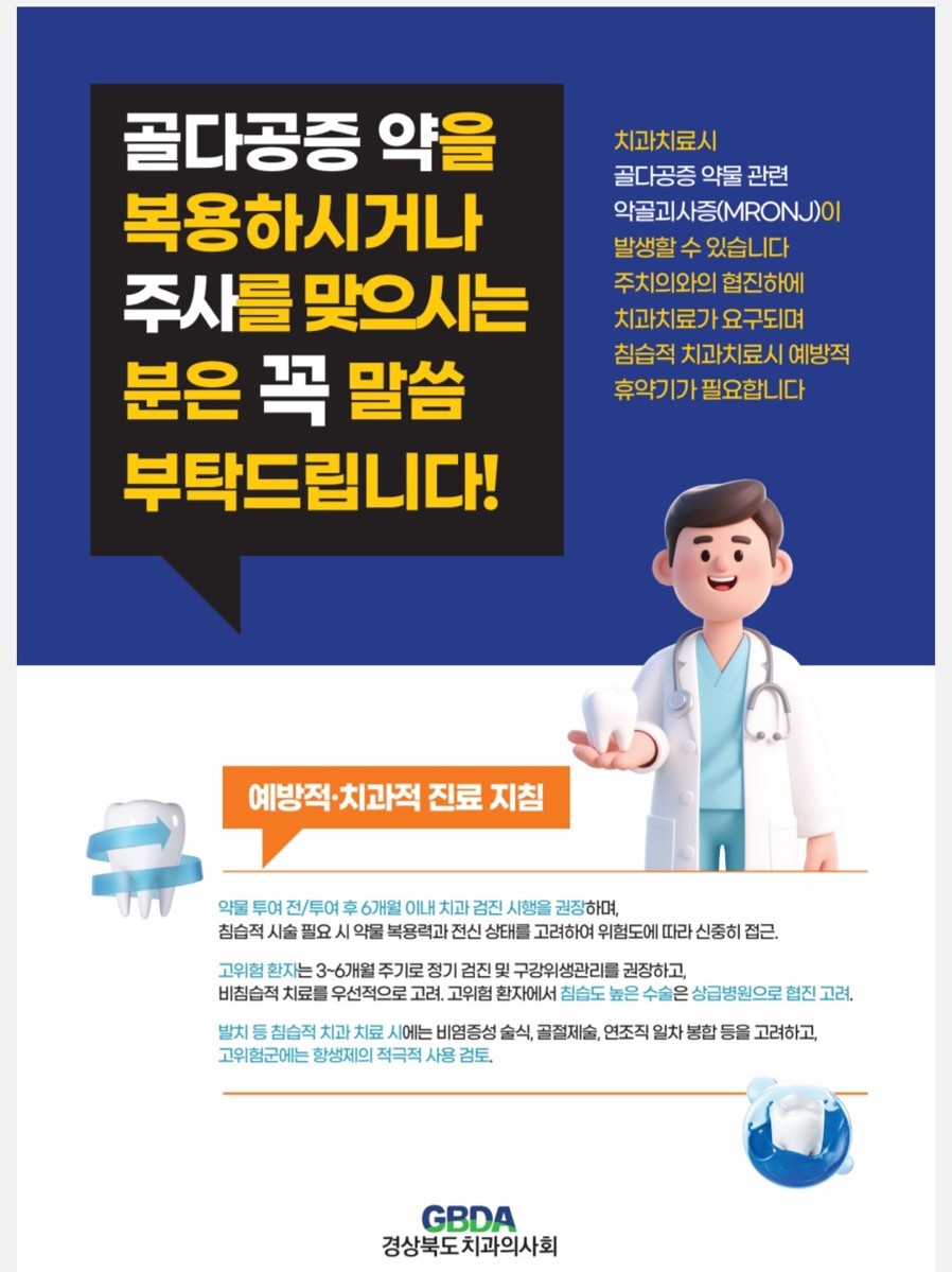 [민치과의원] 골다공증 치료받는 분들에 대한 안내