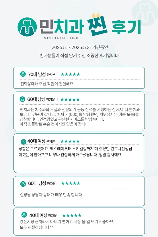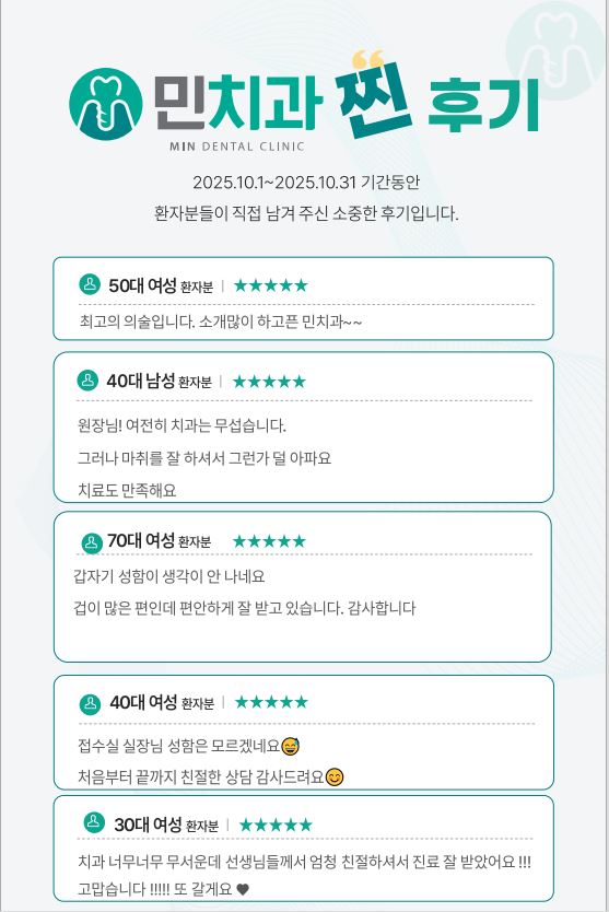 환자들의 경험에서 나온 민치과의원 치료후기
